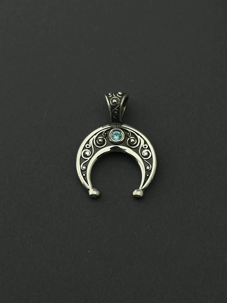 Серебряная подвеска Лунница с цирконом, двусторонняя. Серебро 925°, чернение, вес 4,3 г. Символическое украшение украинского производства.